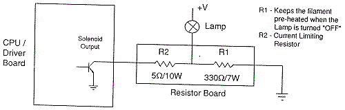- Lamp matrix power resistors. On the CPU board, lower right corner, there