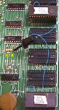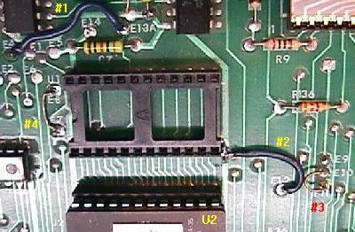 - Jump E12 to GND (large GND trace next to the ROM sockets)